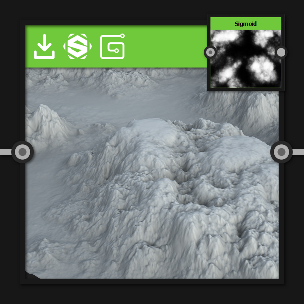 Implements the sigmoid function: https://en.wikipedia.org/wiki/Sigmoid_function as a node in Substance Designer.